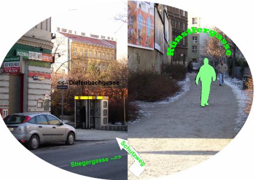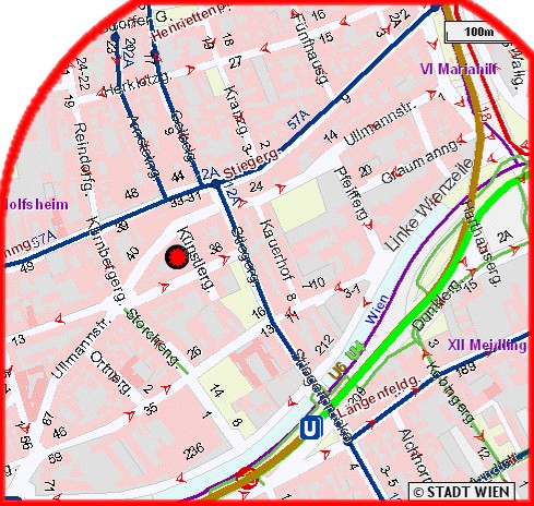 It's just two minutes' walk from the station U4#U6 Längenfeldgasse. Leave station at city-bound exit, continue on to Stiegergasse. Then take the first left (at the pizzeria on the corner) into Diefenbachgasse, first right again and walk past the park.